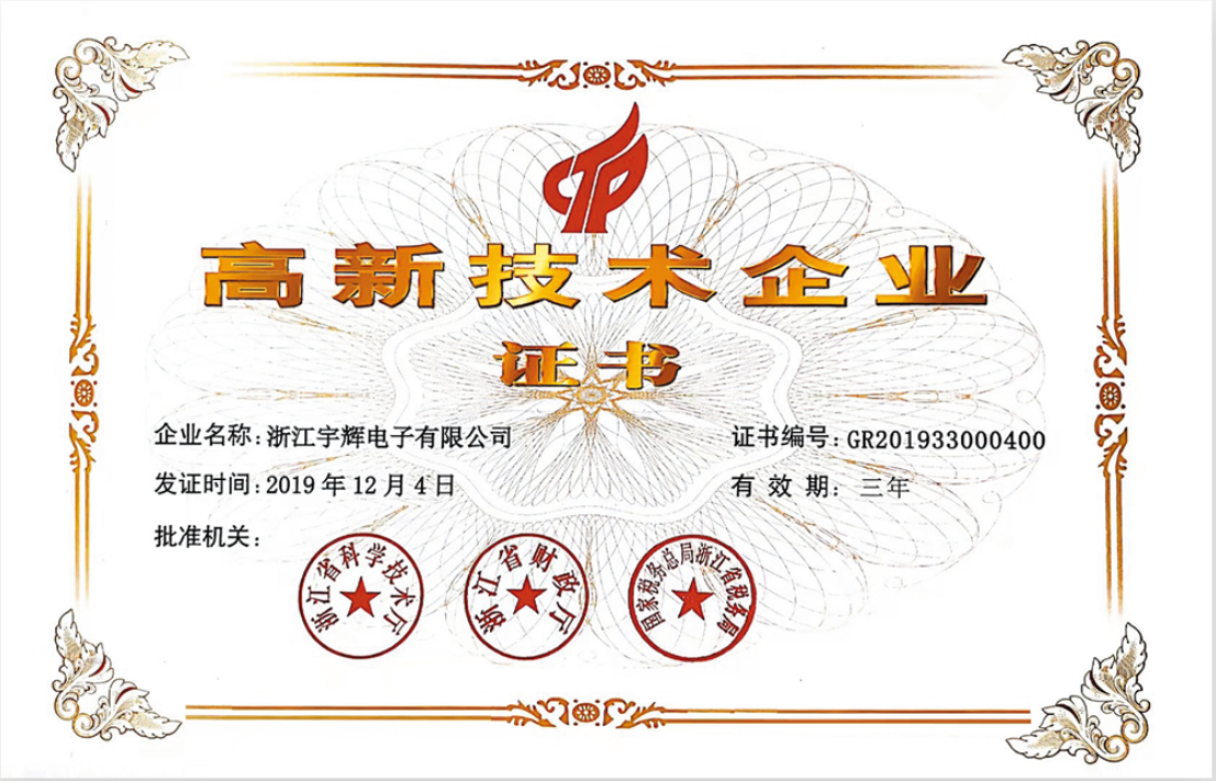 2019公司更名為:浙江宇輝電子有限公司